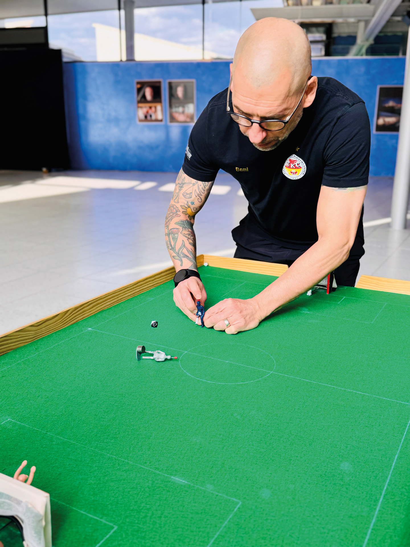 Für Benjamin Buza, der aus gesundheitlichen Gründen mit dem klassischen Fußball aufhören musste, hat Tipp-Kick einen ganz besonderen Stellenwert: „Weil es für mich der Ersatz zum Fußball ist, verbinde ich ganz andere Emotionen damit. Ich finde es immer noch faszinierend, dass ich mit den Jüngeren mithalten kann. Gleichzeitig ist Tipp-Kick ein Sport, den man auch im höheren Alter noch erlernen kann. Man ist Spieler, Torwart und Coach zugleich und genau das macht für mich die Faszination aus.“