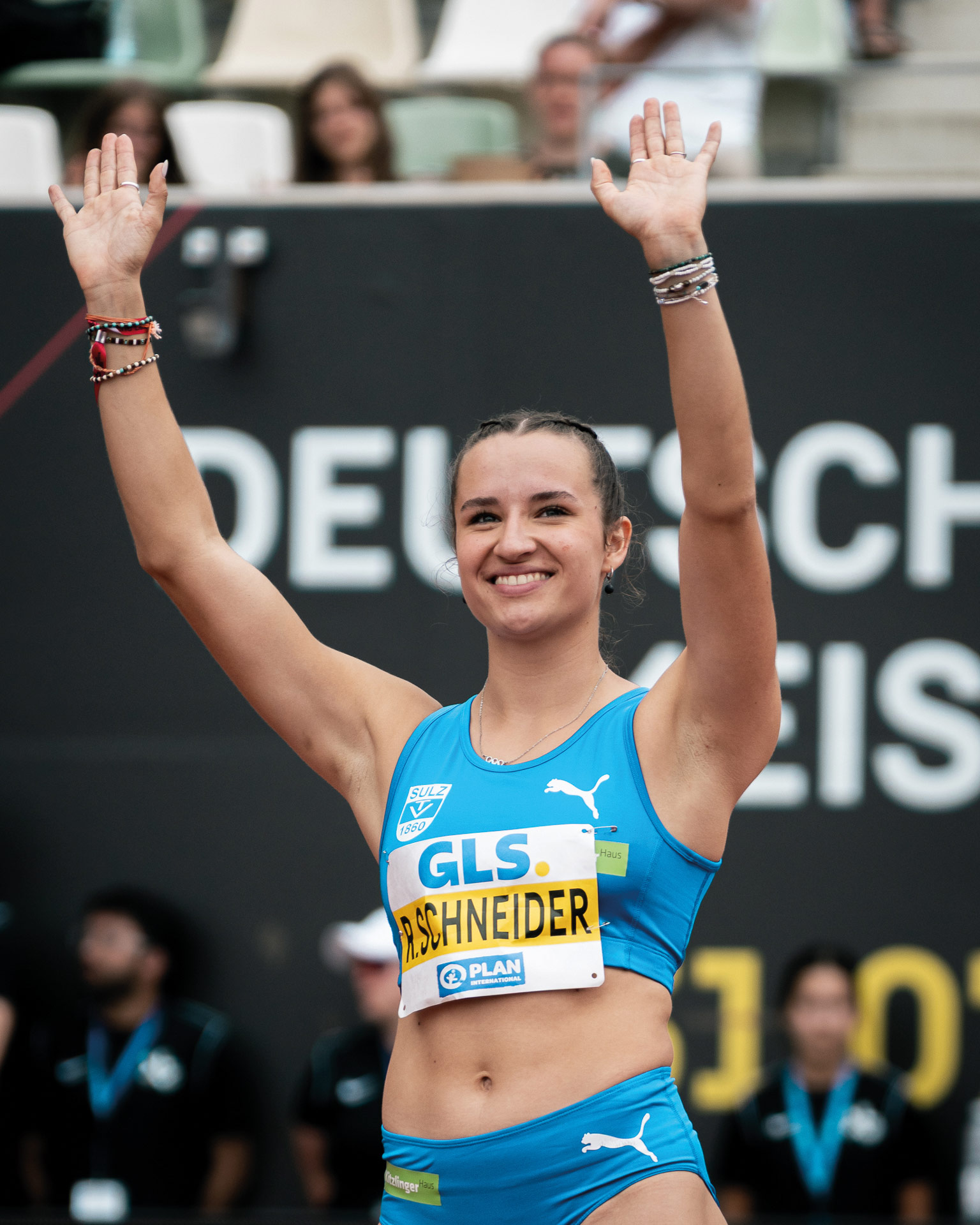 Den Auftakt der Wettkampfserie machten vom 4. bis 6. Juli die Deutschen U23-Meisterschaften in Ulm. Dort feierte Rosina Schneider einen knappen, aber wichtigen Sieg über die 100-Meter-Hürden. „Das war für mich ein Highlight, weil es gezeigt hat, dass ich in meiner Altersklasse vorne mitlaufen kann.“