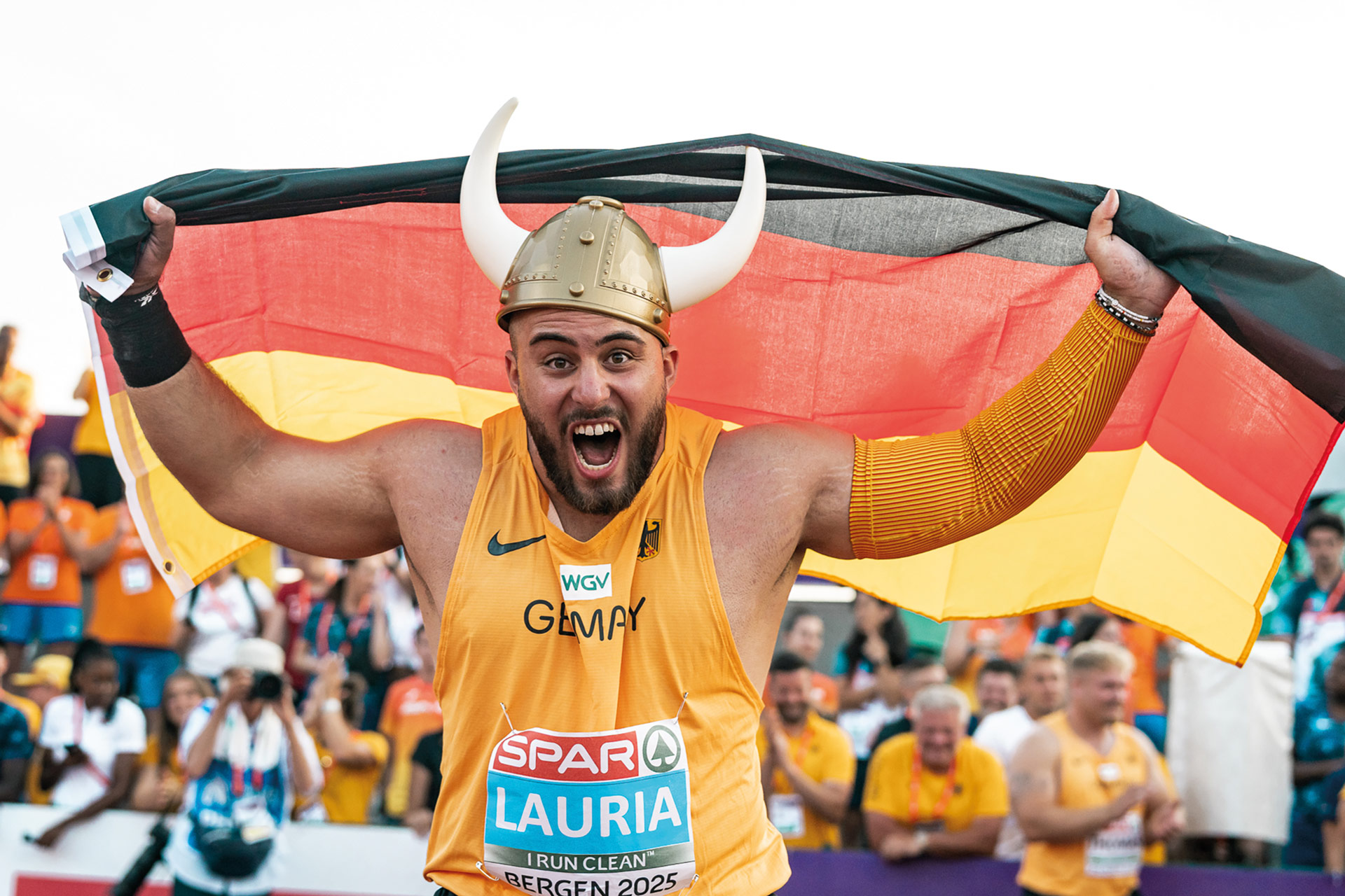 „Für mich war die U23-EM der sportliche Höhepunkt in diesem Jahr und ich habe voll meinen Fokus daraufgesetzt, denn ich wollte unbedingt meinen Titel von 2023 verteidigen“, erzählt Tizian Lauria. „Ich habe es letztendlich auch geschafft und mit einer Weite von über 20 Metern wieder Gold geholt. Die Atmosphäre war echt der Wahnsinn, und es ist für mich jedesmal aufs Neue eine riesige Ehre, für Deutschland zu starten“, erinnert sich der 22-Jährige strahlend.